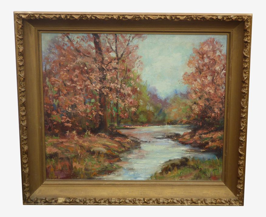 KashewVintage Oil on Canvas Painting Picture of a River & Trees by H. Ritchie