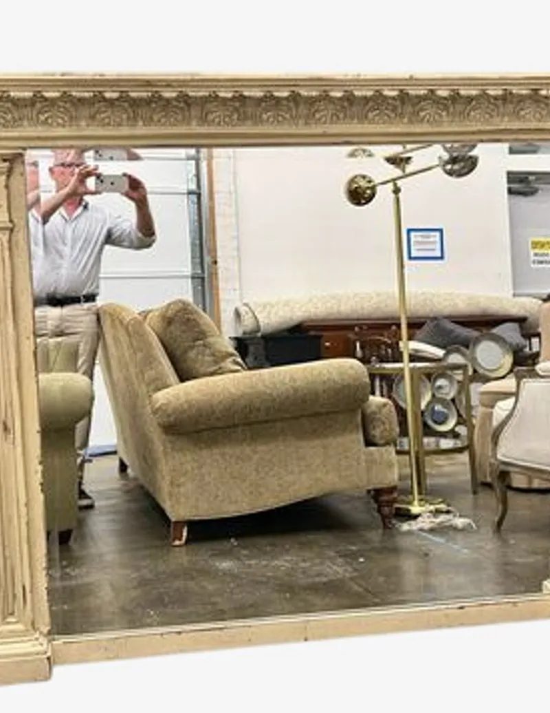 Classical Style Painted Over Mantel Mirror, H. 53.85 in. x W. 72.5 in.