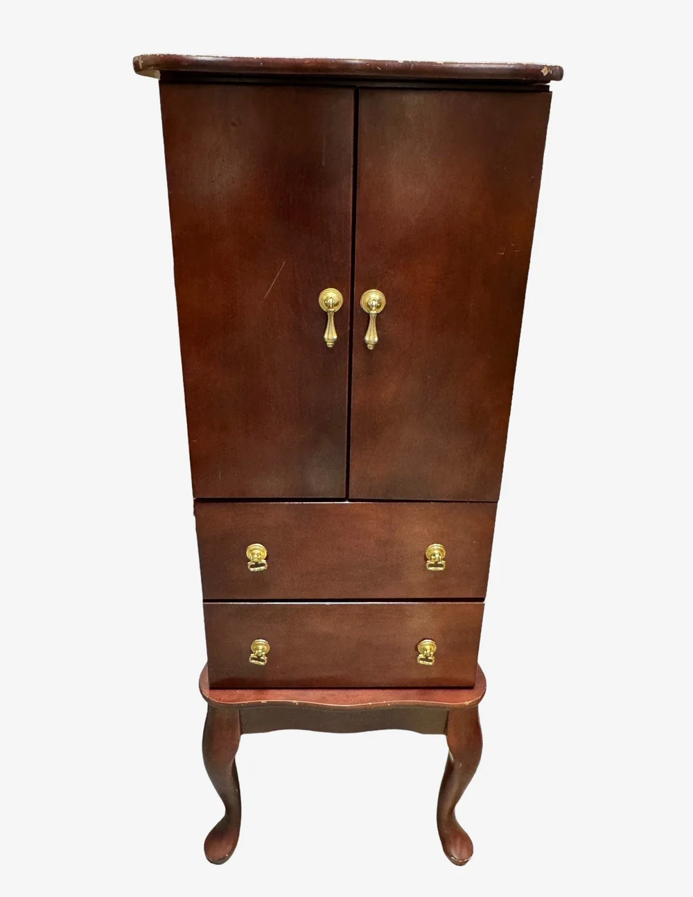 Vintage Wood Queen Anne Legs Jewelry Box Armoire Cabinet EK221-119