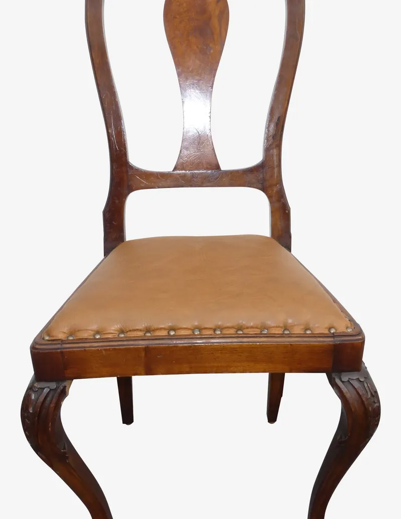 1950s Vintage Ball & Claw Feet Burl Wood Brown Leather Decorative Nail Accent Chair