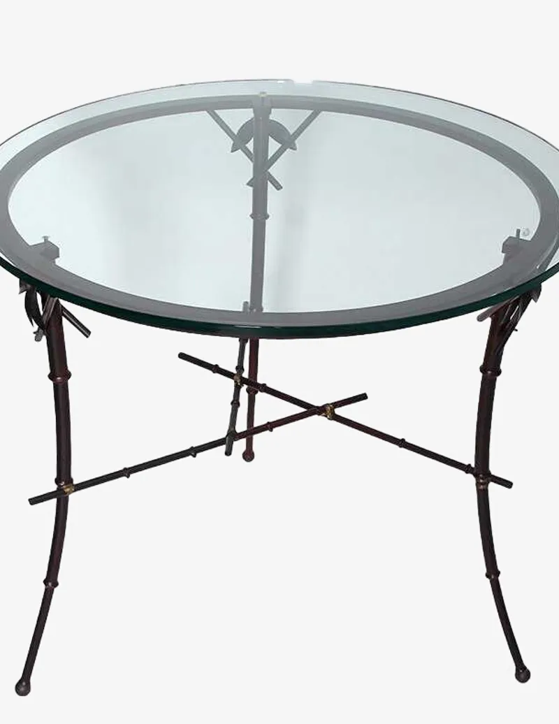 Vintage Tripod Metal Bamboo Accent Table with Florets and Gilt Knots 1980s
