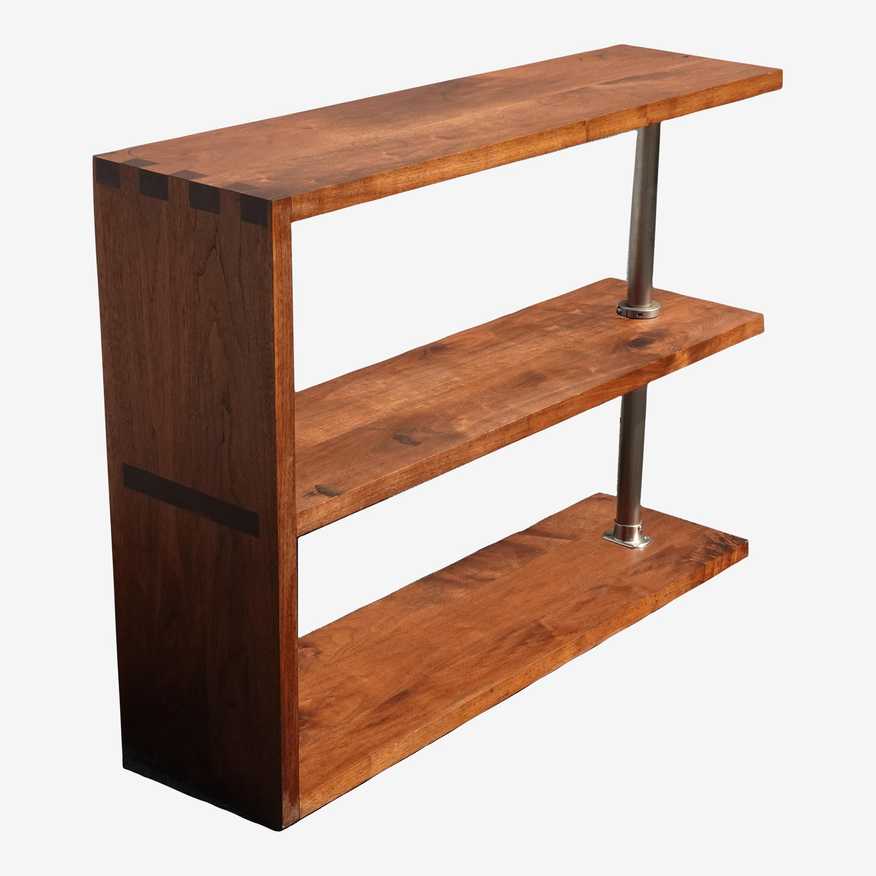 KashewVintage Mid Century Style Three Tier Brown Walnut Bookshelf Bookcase W Chrome