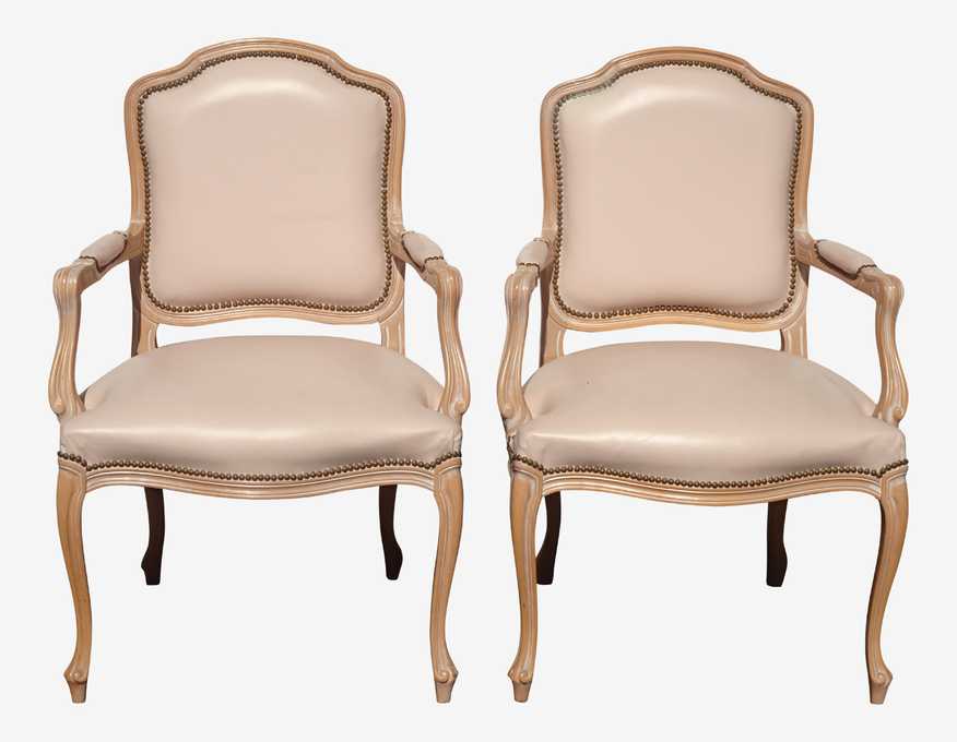 KashewVintage French Country Leather Accent Chairs by Chateau d'Ax Spa Made Italy - a Pair