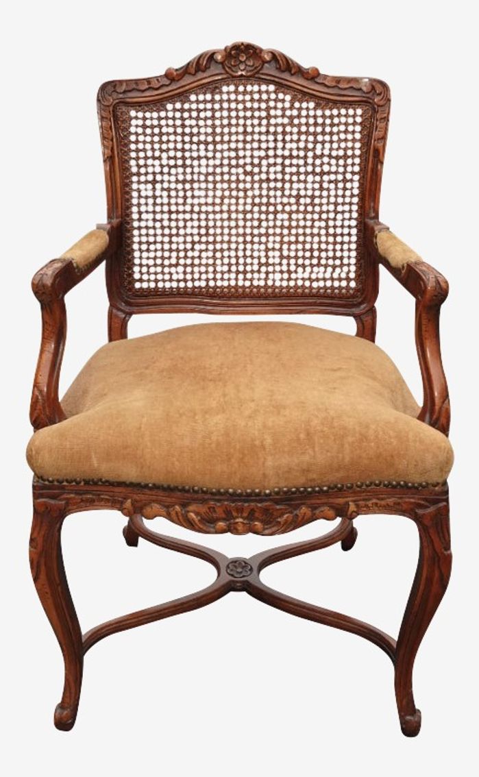 KashewVintage French Provincially Carved Gold Accent Cane Chair Made in Spain