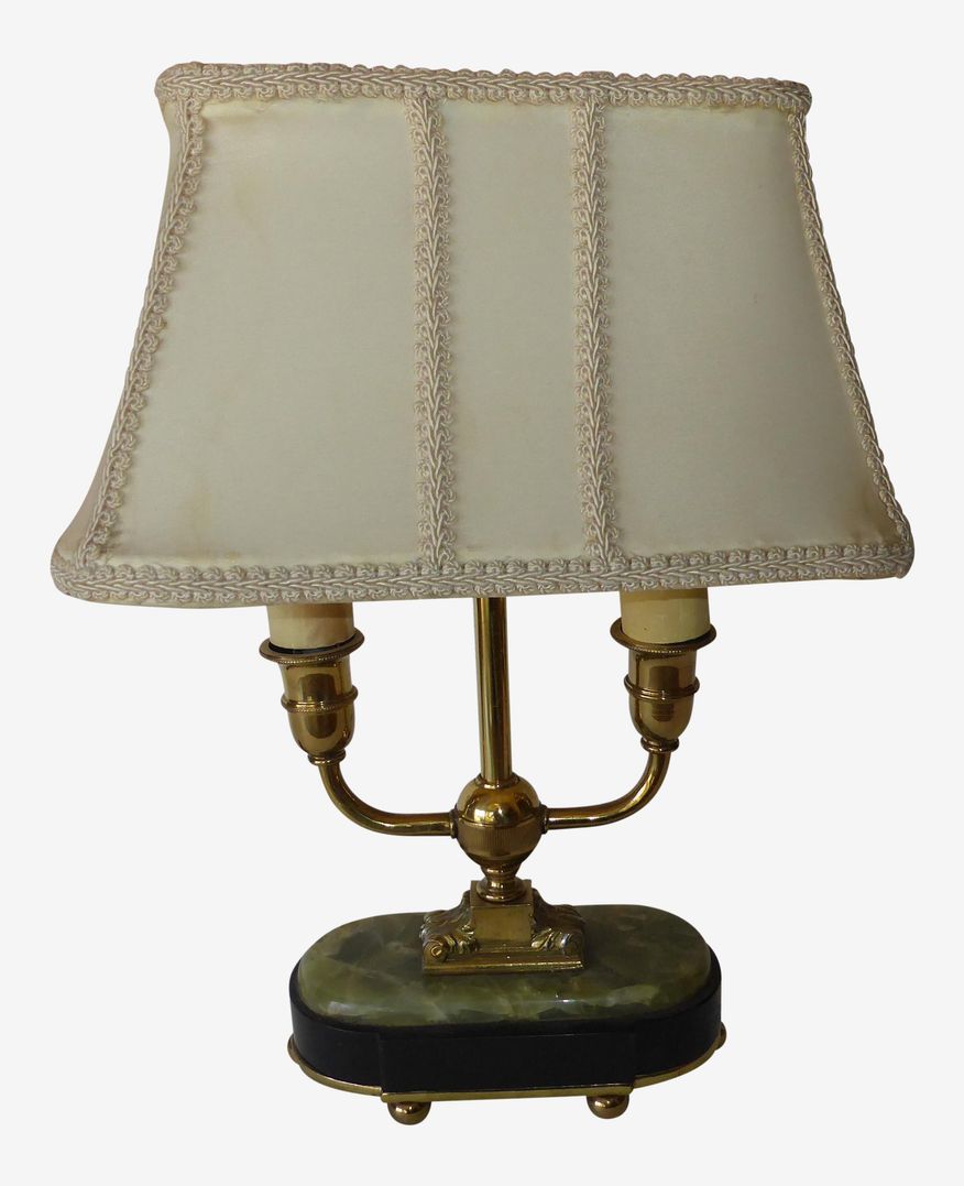 KashewVintage Mutual Sunset Lamp Co. Two Armed Brass, Alabaster & Marble Lamp