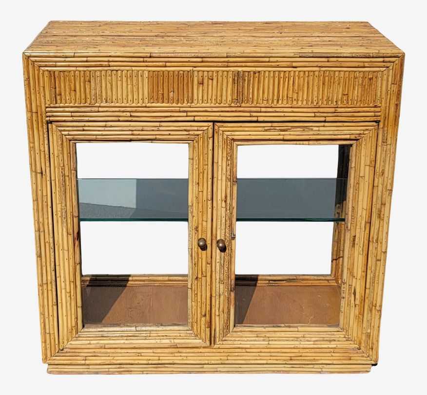Vintage 1950s Vertically Stacked Bamboo Lowboy Display Cabinet W Two Shelves