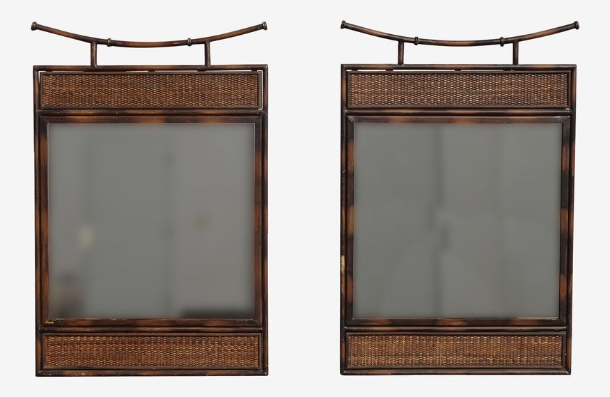 Pair of Oriental Asian Brown Wall Mantle Mirror