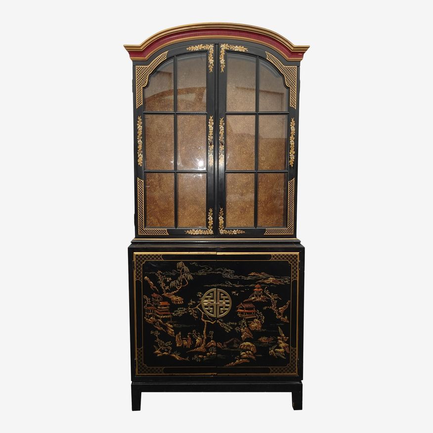 KashewVintage Mid Century Asian Drexel Black & Gold Chinoiserie Cabinet Display Case