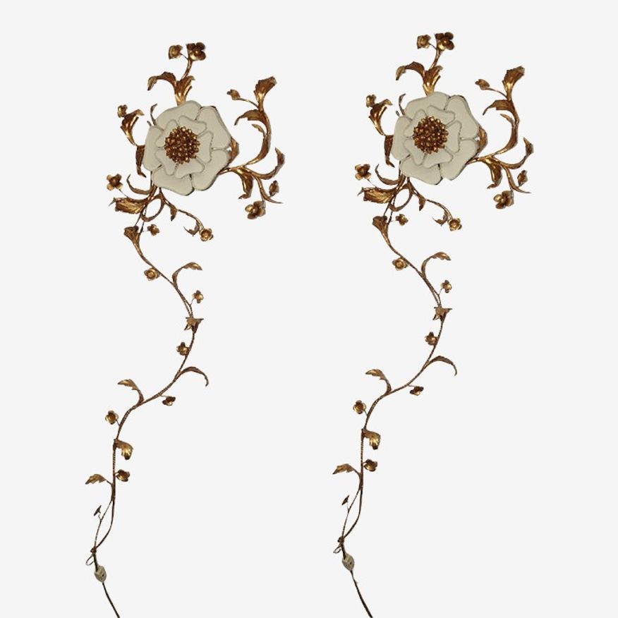 Pair Vtg Italian Hollywood Regency Gold Floral Wall Lights Sconce Made Italy #1