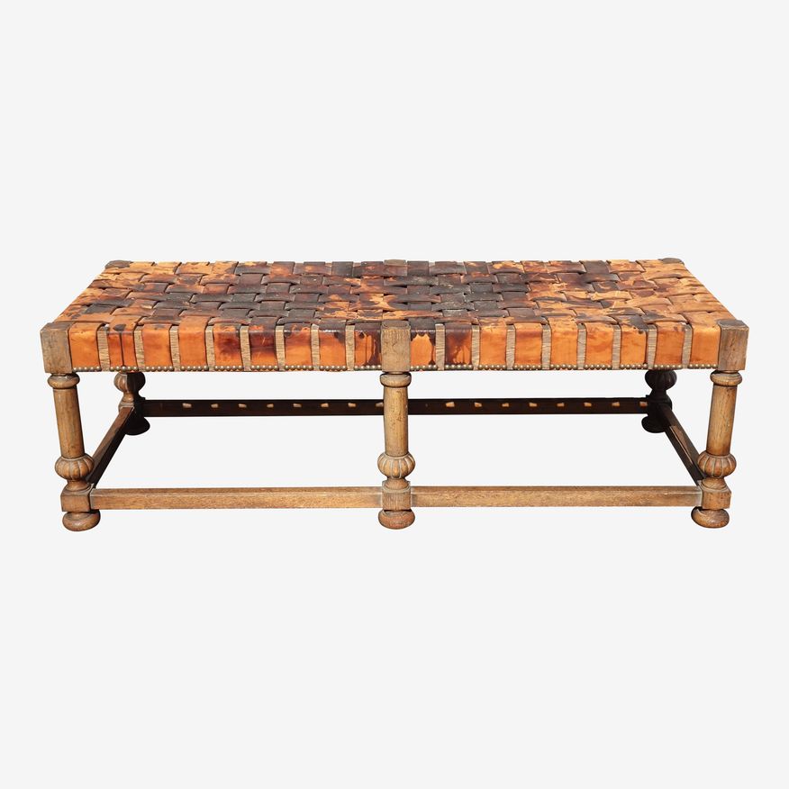 KashewVintage Heritage French Country Brown Rustic Braided Leather Bench