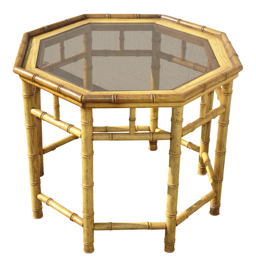 Vintage Mid Century Bamboo Rattan Octogon End Table Side Table
