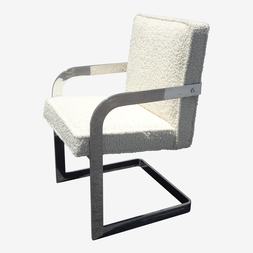Kashew1970s Mid Century Modern Ivory Boucle Chrome Side Chair