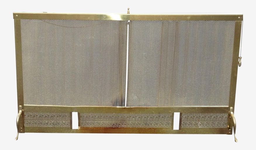 KashewVintage French Country Gold Metal & Brass Fireplace Screen With Metal Curtain