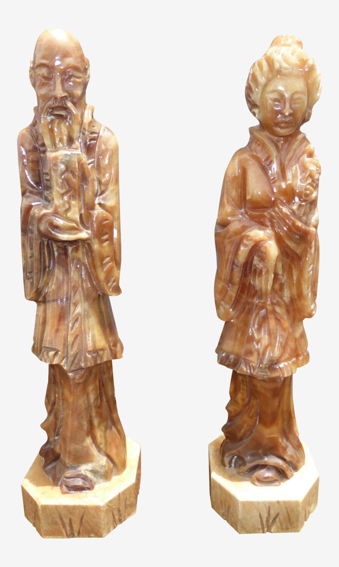 KashewVintage Oriental Asian Style Man & Woman Marble Statues Sculptures 18" Tall - a Pair