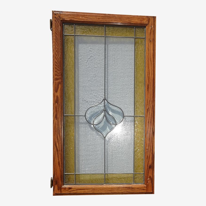 KashewVintage Stained Glass Door Window With Oak Frame & Clear Floral Center