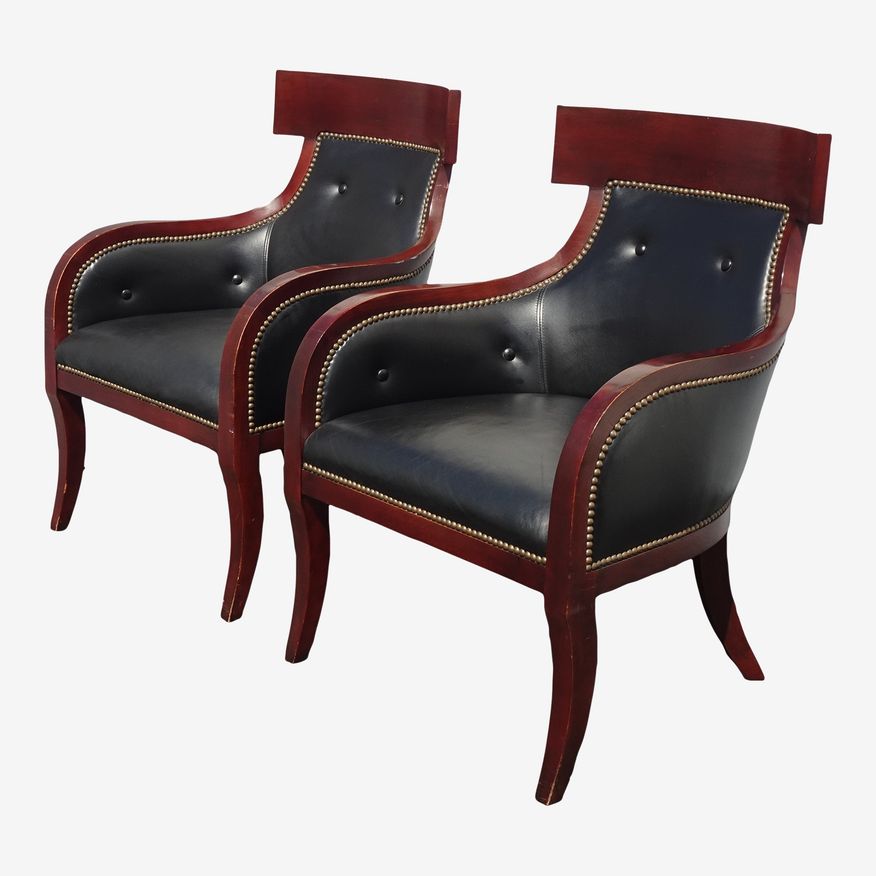 KashewPair of Vintage Our House Designs Black Leather Club Chairs