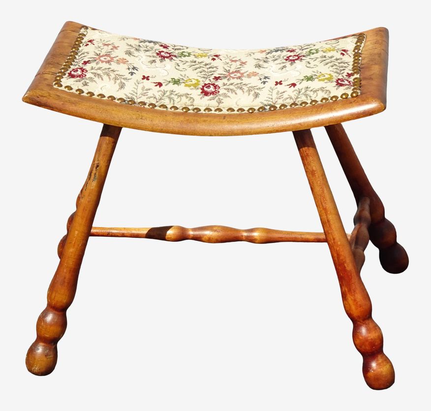 KashewVintage French Country Oak Saddle Style Seat W Floral Fabric Stool Bench