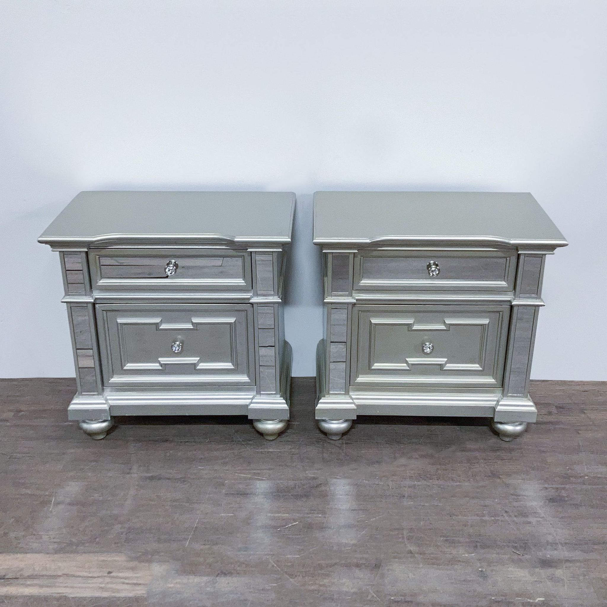 Pair of Furniture of America Silkhe 2-Drawer Silver Nightstands