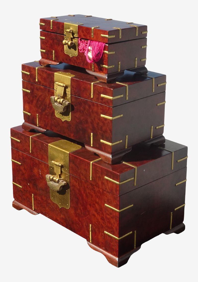 Set of Three Vintage Oriental Asian Jewelry Storage Boxes French Country