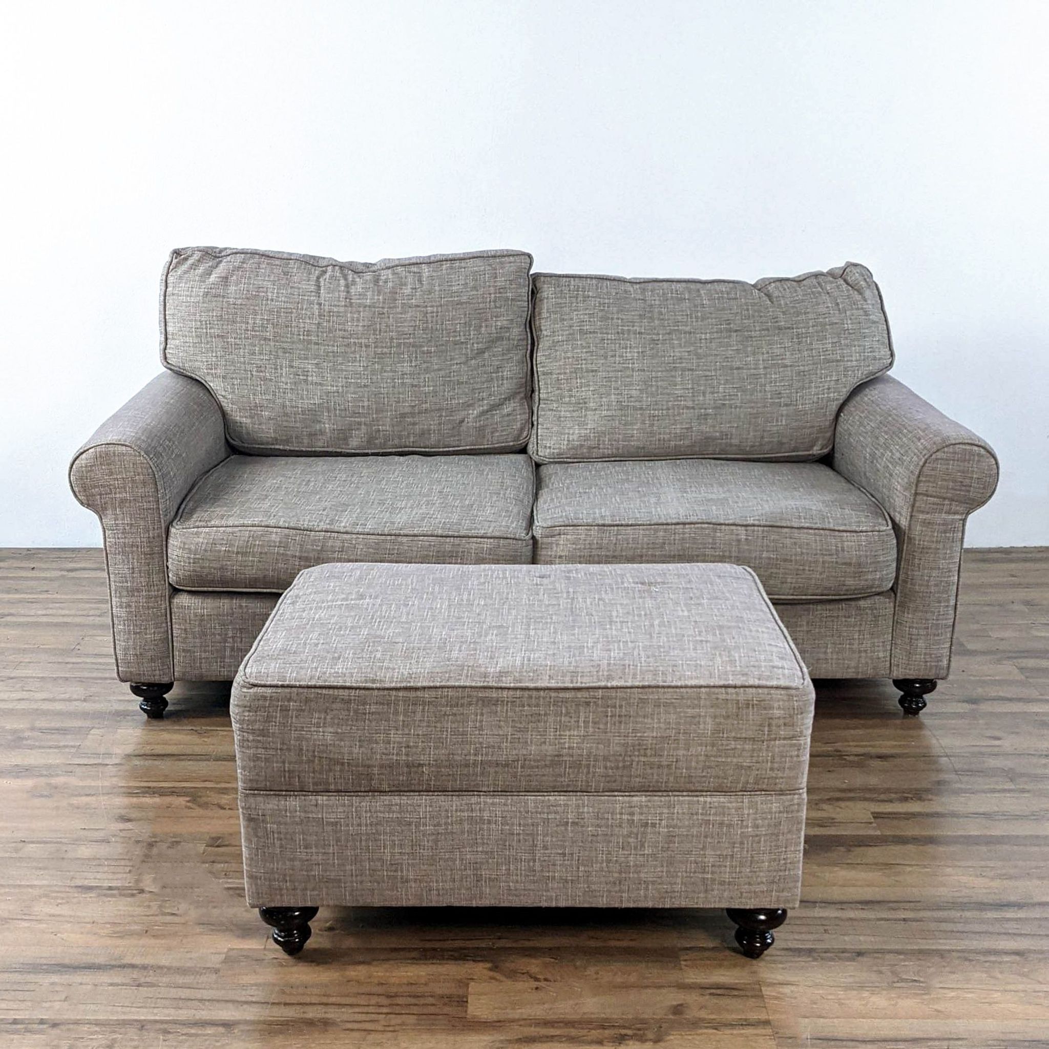 SofaULove Gray Upholstered Loveseat and Ottoman