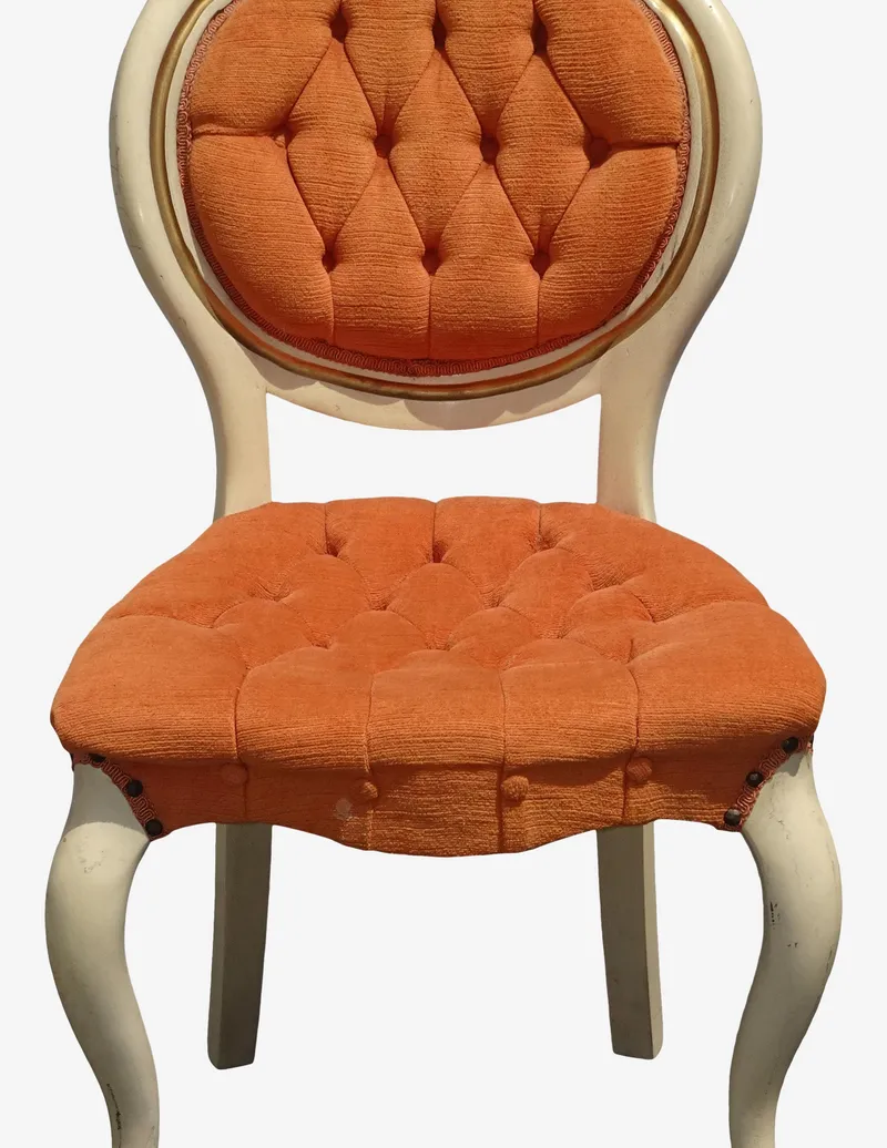 Vintage French Provincial Orange Velvet Tufted Accent Chair by Kimball