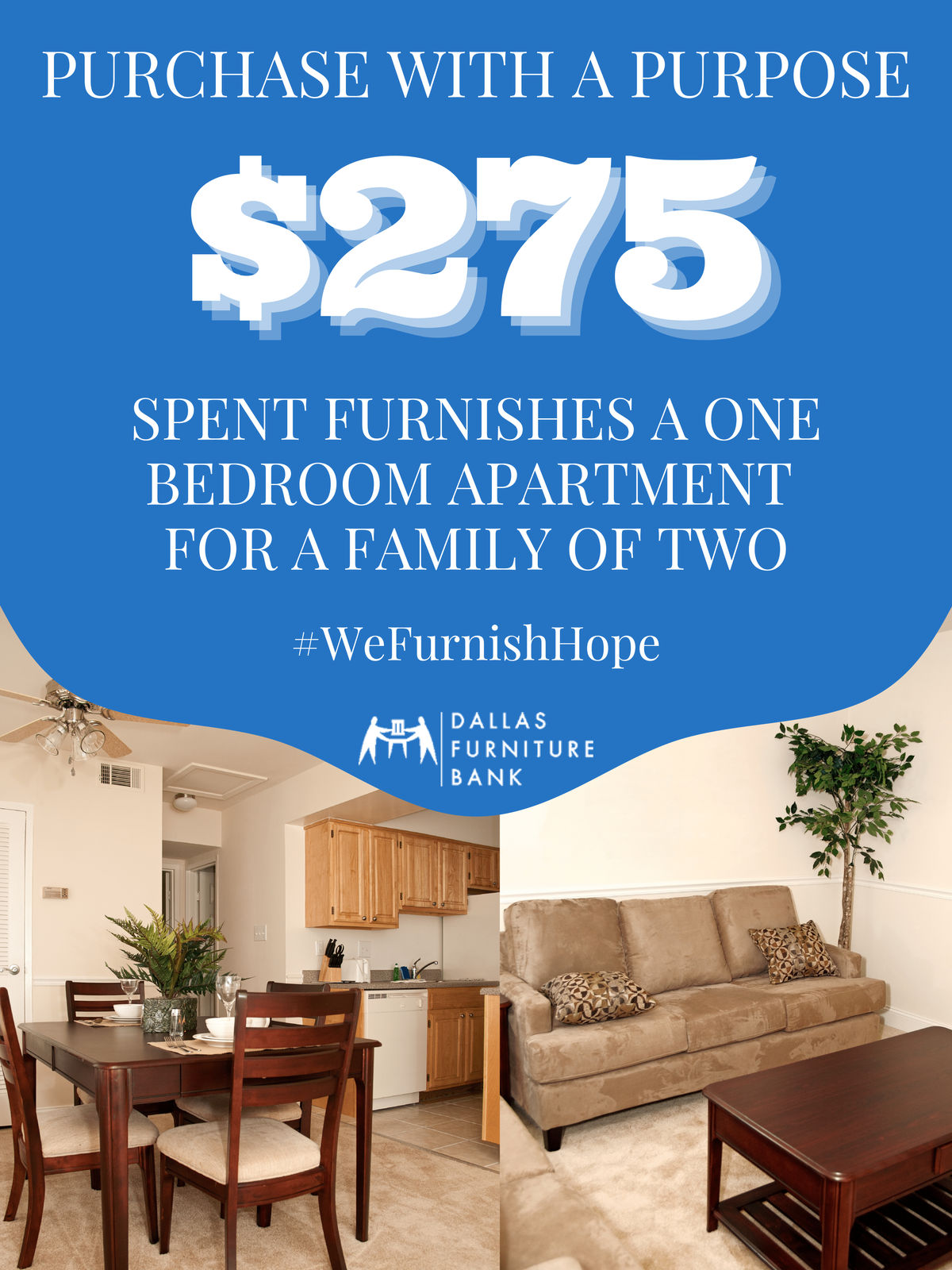 The Dallas Furniture Bank is a non profit serving our North Texas community by furnishing apartments for those transitioning out of homelessness, fleeing domestic or political abuse, and others in need.
